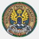 Clan Johnston crête badge entouré d'une sangle et boucle sur l'arrière - plan tartan. Texte personnalisé.