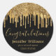 parties scintillant à goutte noir d'or de deuxième cycle élégant Classic Round Sticker