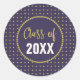 Ce design audacieux et moderne présente un motif accrocheur de petits triangles dorés sur un arrière - plan mauve branché avec un cercle au centre, entouré de petits cercles dorés. À l'intérieur du cercle est le texte, "Classe de" en or dans la typographie manuscrite populaire. En dessous de ce texte est une année de graduation personnalisable en blanc dans la typopgraphie populaire. Changez simplement l'année pour personnaliser cet article pour vous-même, un camarade de classe ou un proche. Ces autocollants font de grands cadeaux ou des faveurs pour une fête de remise de diplômes ou une réunion de classe.