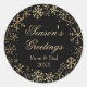 Design festif traditionnel noir et or avec flocons de neige. Modifiez facilement le modèle à vos noms et à votre année désirés. Sticker rond Bonnes Fêtes Classic.