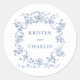 Sticker Rond Classic French Blue Flowers & Ribbons Wedding