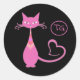 Sticker Rond Classic Retro rose Kitty Chat Coeur Tail Monogramm