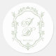 Sticker Rond Classic Sage Green Floral Monogram Crest Wedding