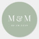 Sticker Rond Classic Sage Green Monogram Typography Wedding