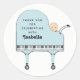 Bons autocollants cadeaux baby showers, merci à la fête de favoriser les étiquettes et enveloppes scellés avec piano à queue bleu conçu comme une poussette. Modifiez le texte pour ajouter le nom de la mère à être.