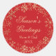 Design hivernal classique rouge et or avec des flocons de neige. Un rouge traditionnel, gai, festif. Modifiez facilement le modèle à vos noms et à votre année désirés. Sticker Arrondi Bonnes Fêtes Rouge Or Classic. Rouge de Noël #C30F16