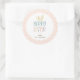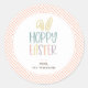 Sticker de Pâques Hoppy. Typographie mignonne et colorée, joueuse avec accent d'oreille lapin et bordure motif orange printanière.