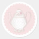 Cet autocollant de théière rose est entouré d'un cercle rose à pétoncles. Le théier est composé de rose et de à petits pois. Coordonné avec d'autres produits de la Collection "Patisserie Parisienne Glam".