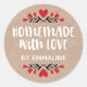 Un autocollant personnalisé "fait maison avec amour" sur un arrière - plan en papier kraft texturé. Faites-le le vôtre en ajoutant votre propre nom. Amusant pour la Saint Valentin, Noël ou toute occasion. Fait une jolie touche finale pour tous vos cadeaux faits à la main. Conçu pour vous par Blackberry Boulevard.
