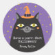 Un mignon chat noir décore cet autocollant avec les mots, Avoir un Halloween pur-fect! C'est amusant pour les gâteries d'Halloween en classe pour vos enfants. Conçu pour vous par Blackberry Boulevard.