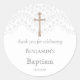 Belle Baptême merci pour les autocollants, avec un crucifix en or et un joli effet dentelle sur le blanc. Prêt pour une personnalisation facile.