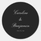 Sticker Rond Classique Noir Script élégant Mariage personnalisé