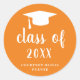 Un autocollant minimaliste de graduation avec un design simple et classique avec un grand casquette et "classe de l'année" dans une épaisse écriture manuscrite avec le nom du diplômé en blanc sur un arrière - plan orange. La couleur arrière - plan peut être changée en n'importe quelle couleur. Un style traditionnel avec une touche moderne, parfait pour une jeune diplômée. Ces autocollants sont excellents comme enveloppes scellées ou pour les faveurs de la fête.