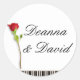 Customisez ces autocollants de mariée et de mariée avec vos propres noms. Clés de rose et de piano rouge pour l'amateur de musique. Bouquet de fleurs colorées de rose rouge, accent rose et jaune et hydrangée blanche avec "Celebrate" en écriture violette profonde.