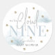 Ce mignon autocollant de baby shower garçon "nous sommes sur le nuage neuf/9" présente des nuages bleus et faux étoiles or sur un arrière - plan blanc. Personnalisez-vous pour répondre à vos besoins. Vous pouvez trouver d'autres produits correspondants dans mon magasin.
