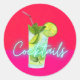 Art bar moderne coloré avec aquarelle mojito cocktail en verre haut avec "cocktails" en néon bleu texte sur coloris rose vif arrière - plan