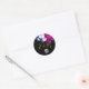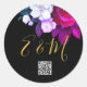 Sticker Rond Code QR Élégant violet Rose Monogramme Mariage Cl
