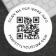 Autocollants ronds avec votre code QR et texte personnalisé. Modifiez les polices et les couleurs, déplacez et redimensionnez les éléments à l'aide de l'outil de conception. Suivez-nous sur Facebook : @businessstationery pour plus de produits, nouvelles, ventes et plus encore.