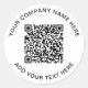 Un autocollant promotionnel simple pour votre entreprise ou organisation. Entrez l'adresse URL de votre site Web pour créer un code QR numérisable et ajouter deux lignes de texte customisé, comme le nom de votre société, le slogan, merci, ou laissez vide.