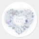 Aquarelle coquille coeur en bleu et violet mariage merci sticker sur un arrière - plan blanc. Coquillages, coraux et étoiles de mer délicatement peints encerclant les mots Merci, en forme de coeur. D'autres articles correspondants sont disponibles. © Peinture et design d'aquarelle à la main par Sarah Trett seulement pour www.mylittleedenweddings.com sur Zazzle.