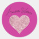 Sticker Rond Coeur de Parties scintillant rose sur Fuchsia