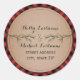 Un autocollant d'adresse de mariage comportant une illustration des branches d'arbre à feuillage persistant. L'arrière - plan est de carte inspiré au-dessus du plaid rouge et noir. Personnalisez le texte avec vos noms et adresse.