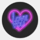 Sticker Rond Coeur des valentines bleu rose néon brillant