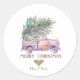 Sticker Rond Coeur d'or, Camion rose Pine Arbres Noël
