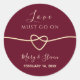 Lettres de texte or simples, élégantes, minimalistes, combinées à des arrière - plans bordeaux et à un élégant coeur de corde en feuille d'or. Unique, chic, adorable collant de faveur de mariage avec citation d'amour : L'amour doit continuer.
