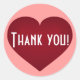 Ce étiquette rond personnalisé est doté d'un coeur pourpre contenant l'expression "Merci !" dans une police blanche acérée. Cliquez sur "Personnaliser" pour redimensionner/repositionner le coeur critique, modifier la couleur de l'arrière - plan et/ou réviser le texte. L'autocollant de coeur cramoisi fonctionne bien comme un ajout de fête aux bouteilles de vin, bonbons, sacs cadeaux ou autres faveurs de fête pour les fêtes de fiançailles, douches nuptiales, dîners de répétition, mariages, fêtes d'anniversaire ou fêtes de la Saint-Valentin.
