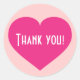Ce étiquette rond personnalisé est doté d'un coeur rose chaud contenant l'expression "Merci !" dans une police blanche acérée. Cet autocollant de coeur rose chaud personnalisé fonctionne bien comme un ajout festif aux bouteilles de vin, bonbons, sacs cadeaux, ou autres faveurs pour baby showers, fiançailles, douches nuptiales, dîners de répétition, ou célébrations mariages.