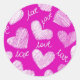 Sticker Rond Coeurs Blancs Rose mignon avec script d'amour