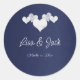 Coeurs blancs sur Stickers ronds classiques de la Marine conçus avec des coeurs blancs doux sur un arrière - plan de couleur marine. Le texte comprend : Les prénoms et la date du Mariage de la mariée et de la mariée. Pour personnaliser, insérez simplement votre texte dans notre modèle facile, en remplaçant l'exemple. Sticker rond classique, Favors de mariage et Sticker d'emballage.