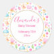 Des autocollants de fête avec un motif délicieux et fantaisiste. Coeurs, lettres d'amour, muffins, tulipes et cerises apportent joie et bonheur à ce mignon petit motif. Jolies couleurs pastel. Un cercle blanc avec une fausse bordure en feuille d'or superposée avec votre texte à l'intérieur.