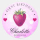 Sticker Rond Coeurs fraises Anniversaire Fille rose