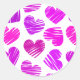 Sticker Rond Coeurs griffés violets et roses modernes Valentine