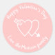 Heureuse Sainte-Valentin rose clair et blanc coeurs mignons texte personnalisé élégant moderne Classic Round Stickers
