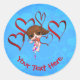 Sticker Rond Coeurs rouges Chiot Cute Personnalisé