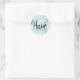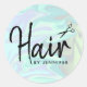 Superbe coiffeuse design d'autocollant rond avec la texture colorée faux holographique et élégante police calligraphie.
