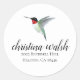 Ce joli autocollant présente un colibri à gorge rubis. La police, la taille de police et la couleur peuvent être modifiées. Ajoutez une touche personnelle aux enveloppes, emballages, lettres et cadeaux faits à la main. La conception peut également être transférée à d'autres produits. L'image de colibri a été prise à partir d'une oeuvre originale de Christiane Dobbins.