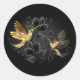 Colibris de bijoux en noir et or sur arrière - plan gris décoré de plantes. Bijoux. Oiseau doré. Oiseau d'or.