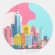 Cette oeuvre d'art présente un paysage urbain moderne créé avec des collages en papier. Elle présente des formes découpées vibrantes représentant des bâtiments, avec des tons pastel lumineux qui rehaussent la scène urbaine animée. Le style abstrait met l'accent sur les formes géométriques et les textures superposées, donnant à l'oeuvre une atmosphère dynamique et contemporaine.