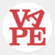 Le mot VAPE en lettres rouges. Les lettres VA sont en haut (A est canté latéralement) et PE en bas. Un hommage à l'art pop, dédié à tous les vapeurs.