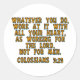 Quoi que vous fassiez, travaillez avec tout votre coeur, comme travaillant pour le Seigneur, pas pour les hommes. Colossiens 3:23