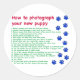 Comment photographier vos nouvelles règles de chiot. Une drôle de liste de règles qu'un photographe ou un propriétaire de chien écrirait en essayant de prendre des photos d'un jeune chiot. Règles pour vivre par humour. Cadeaux parfaits pour tout amoureux des chiens, propriétaire de chien ou photographe. Comment photographier votre nouveau chiot : 1. Retirez la carte mémoire de la boîte et chargez la caméra. 2. Retirez la boîte de la bouche du chiot et jetez à la poubelle. 3. Retirez le chiot de la poubelle et brossez le café du museau. 4. Choisissez un arrière - plan approprié pour la photo. 5. Montez la caméra sur trépied et focalisez-vous. 6. Trouvez le chiot et prenez la chaussette sale de la bouche. 7. Placez le chiot à un endroit préciblé et revenez à la caméra. 8. Oubliez la tache et ramper après le chiot à genoux. 9. Se concentrer d'une main et repousser le chiot d'une autre main. 10. Obtenez des tissus et des impressions musculaires propres à partir de lentilles. 11. Récupère la boîte de tissu de la bouche du chiot et ramasse du papier éparpillé. 12. Mettez le chat dehors et mettez le peroxyde sur l'égratignure sur le nez du chiot. 13. Remets les magazines sur la table basse. 14. Essayez d'attirer l'attention du chiot en vous écrasant un jouet sur la tête. 15. Remplacez vos lunettes et vérifiez que l'appareil photo est endommagé. 16. Monte juste à temps pour dire : "Non, dehors ! Non, dehors ! !". 17. Appelez votre conjoint pour nettoyer la pagaille. 18. Réparez un verre ! 19. Asseyez-vous avec un verre et décidez-vous d'enseigner le chiot? "assis" et restez" la première chose du matin!