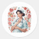 Sticker Rond Compassionate Nurse – Elegant Floral Art Illustrat