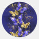 Composition des luxueux papillons saphir et bijoux en or sur arrière - plan bleu texturé.