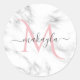 Autocollant de monogramme de nom de calligraphie de script rose blush de marbre de luxe de fille classe.