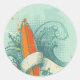 Illustration graphique d'une planche de surf et d'ondes océaniques à l'aspect patiné
