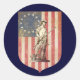 Dessin vintage de Concord Minuteman avec 13 colonies (Betsy Ross) premier drapeau américain en forme de bouclier de l'arrière - plan. Usagé. Vous pouvez ajouter votre message